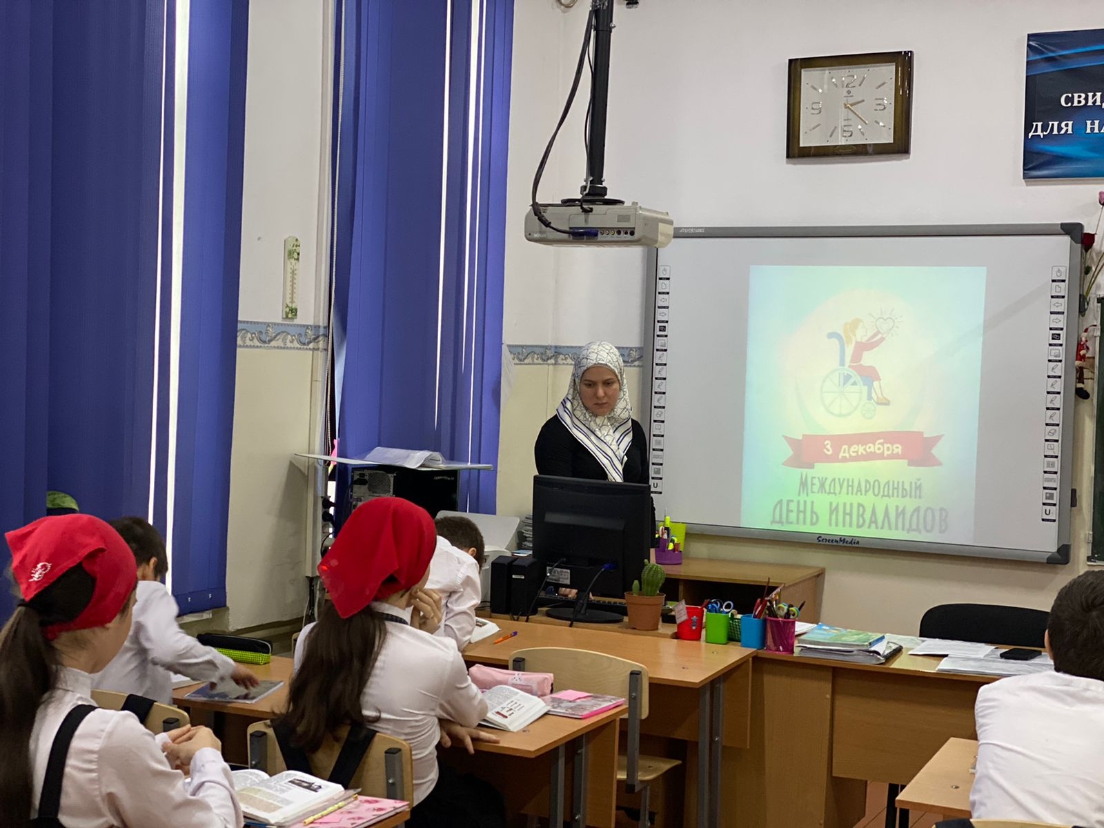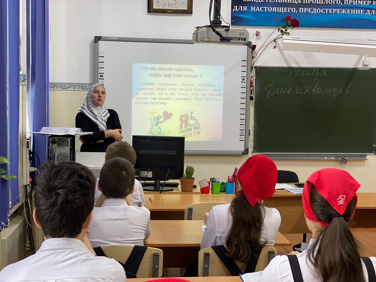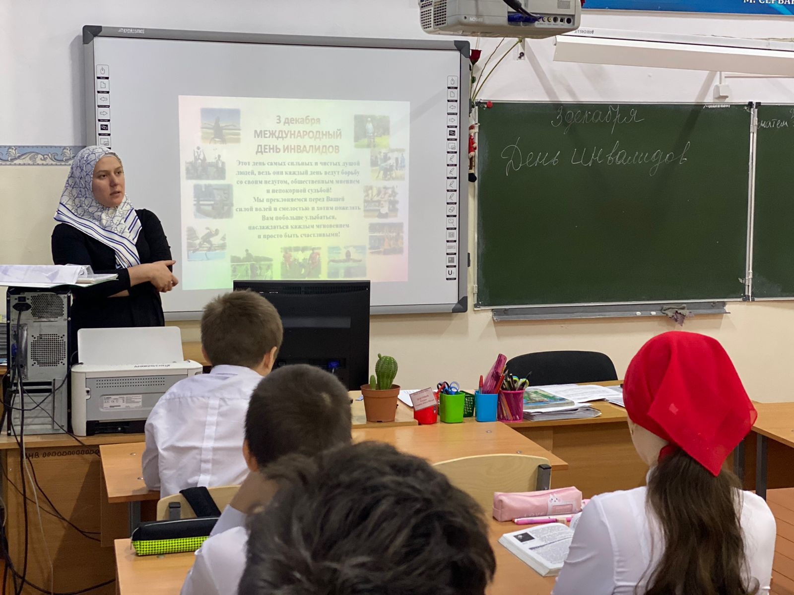 В школе прошли классные часы посвящённые дню инвалидов. В 7 А классе классный руководитель рассказал о важности удаления внимания к людям с ограниченными возможностями. Так как они нуждаются в нашей поддержке и понимании.