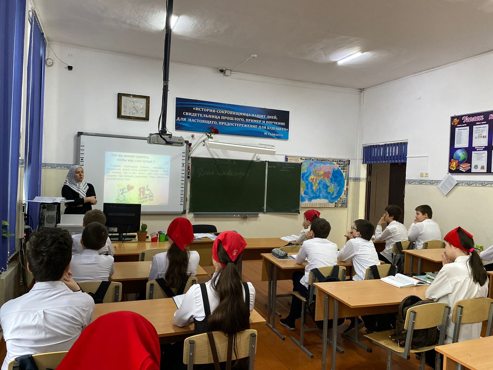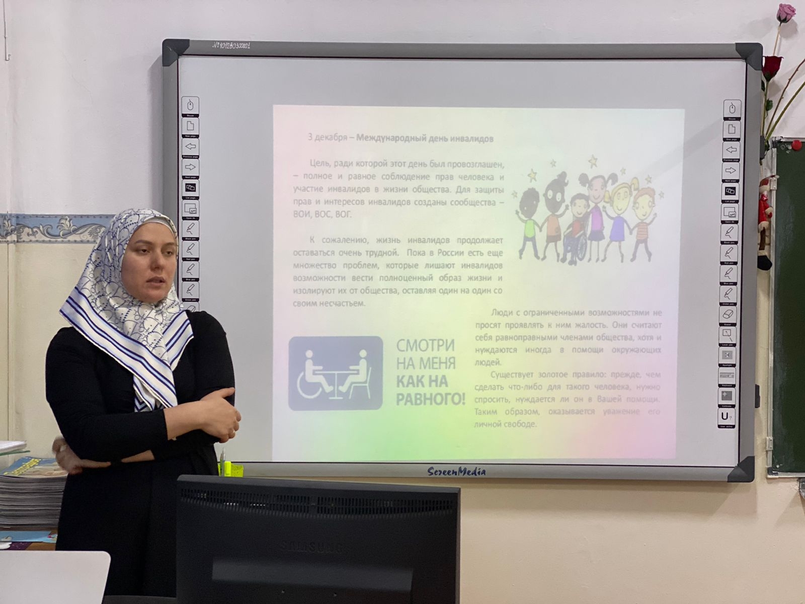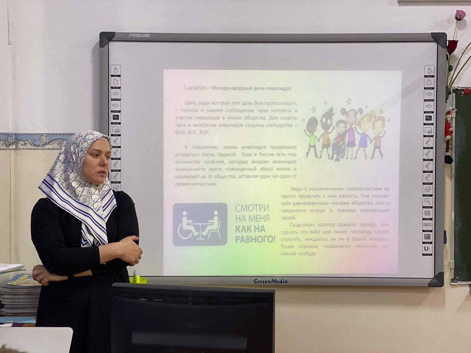 В школе прошли классные часы посвящённые дню инвалидов. В 7 А классе классный руководитель рассказал о важности удаления внимания к людям с ограниченными возможностями. Так как они нуждаются в нашей поддержке и понимании.